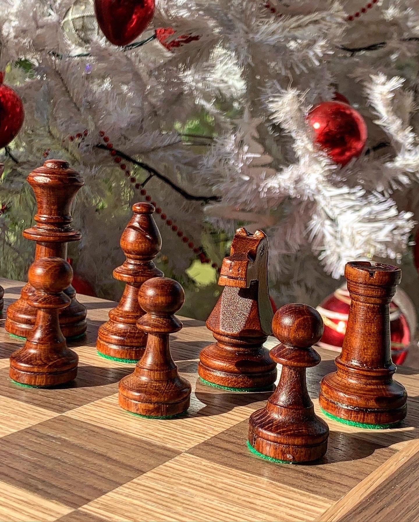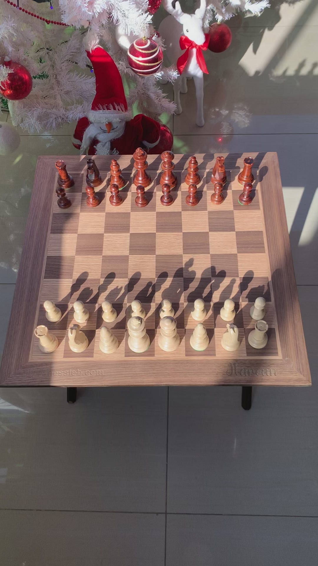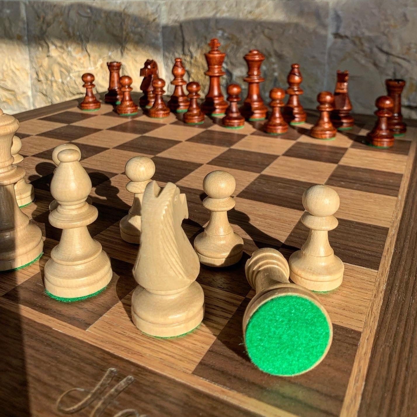 Meet the epitome of luxury chess sets—the Chess Polonaise. Crafted from premium oak and walnut wood, this set showcases a unique Eastern European design, seamlessly blending tradition with style. The green velvet bases not only enhance the set's elegance but also protect your board from scratches during play.