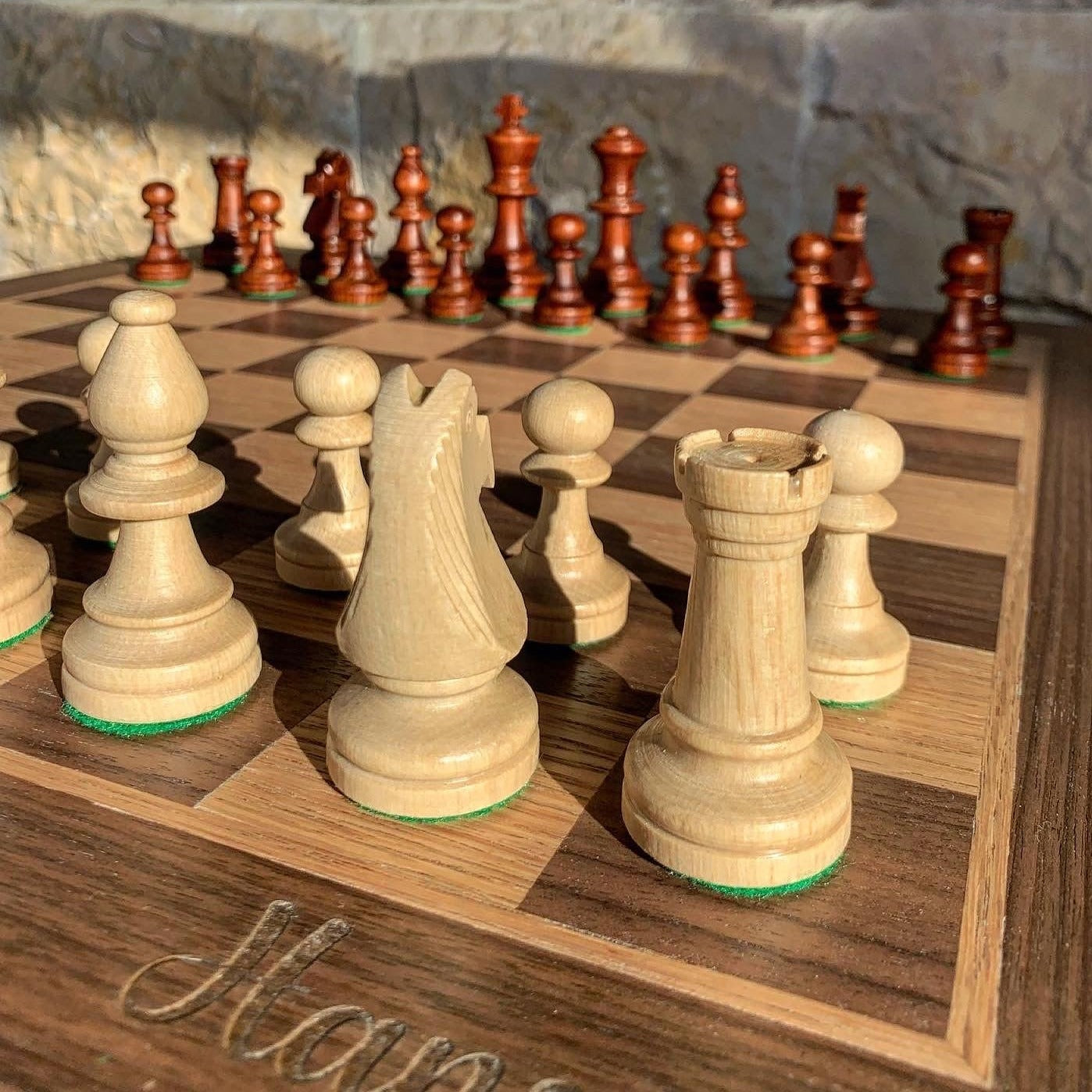 With an impressive King size of 9.5cm and generous board dimensions of 50cm x 50cm, this oversized set is perfect for those who love to play chess in style. Each piece is weighted for a sturdy feel, ensuring durability for the board. For a personal touch, add your name for just $7 extra.
