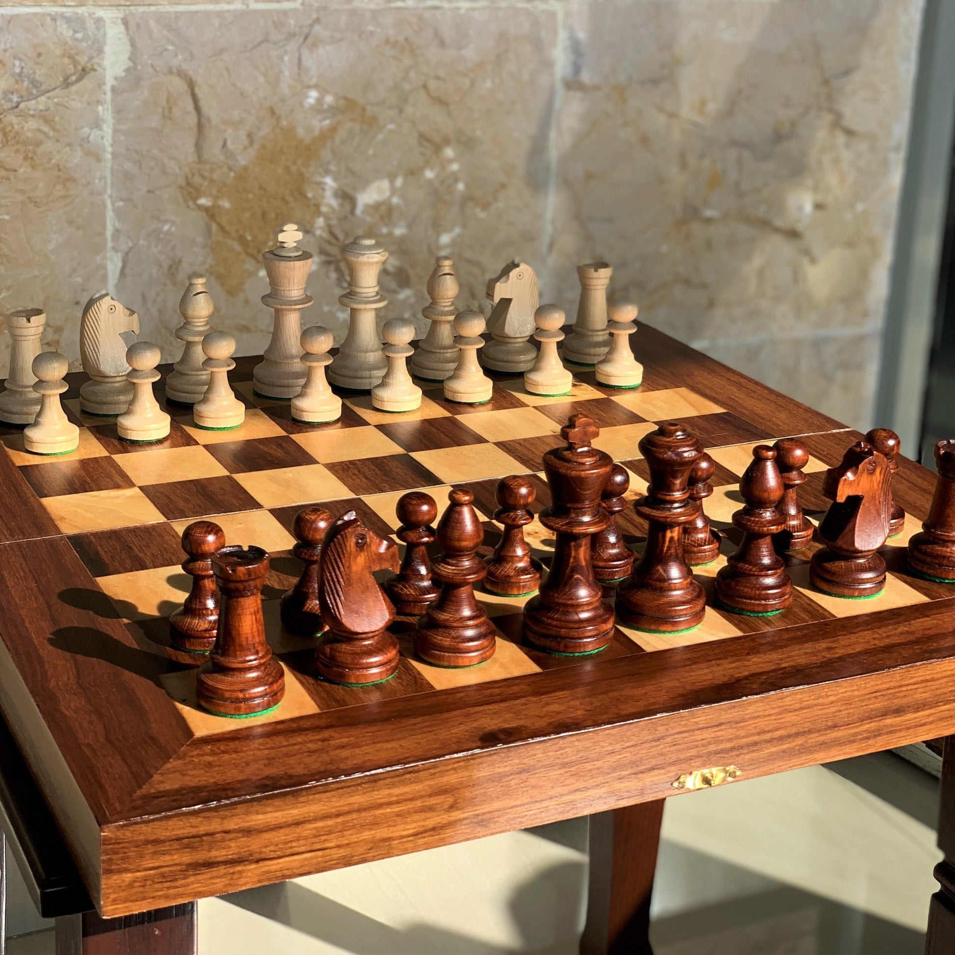 The chess pieces are equally impressive, each one painstakingly carved from the same high-quality rosewood as the board itself. The pieces have a substantial weight and feel to them, making them easy to move and providing a satisfying tactile experience during play.