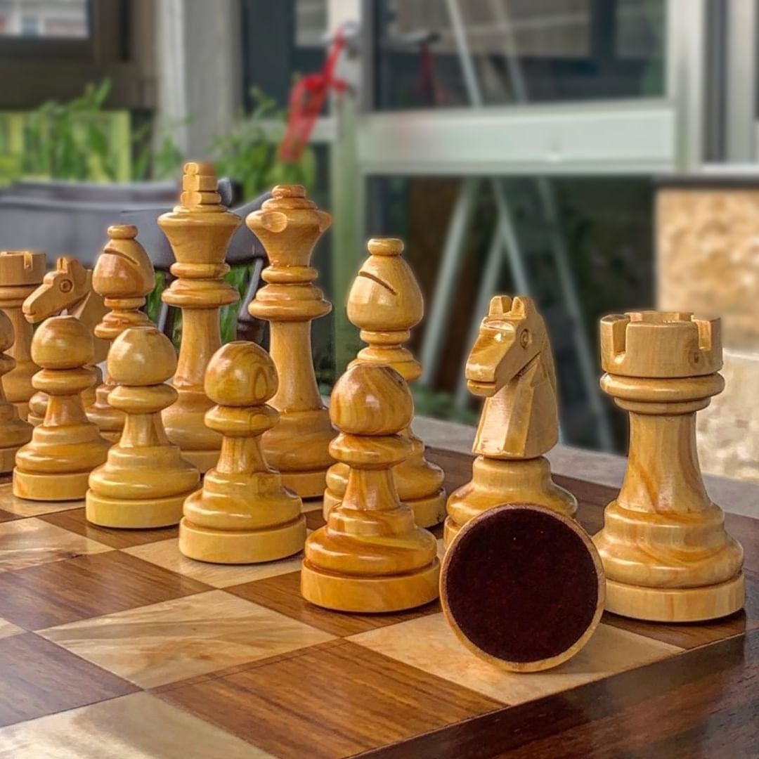 Imported from Turkey, the triple-weighted chess pieces boast superior craftsmanship and intricate detail. Each piece features velvet padding at the bottom, adding a royal touch while safeguarding your board from scratches.