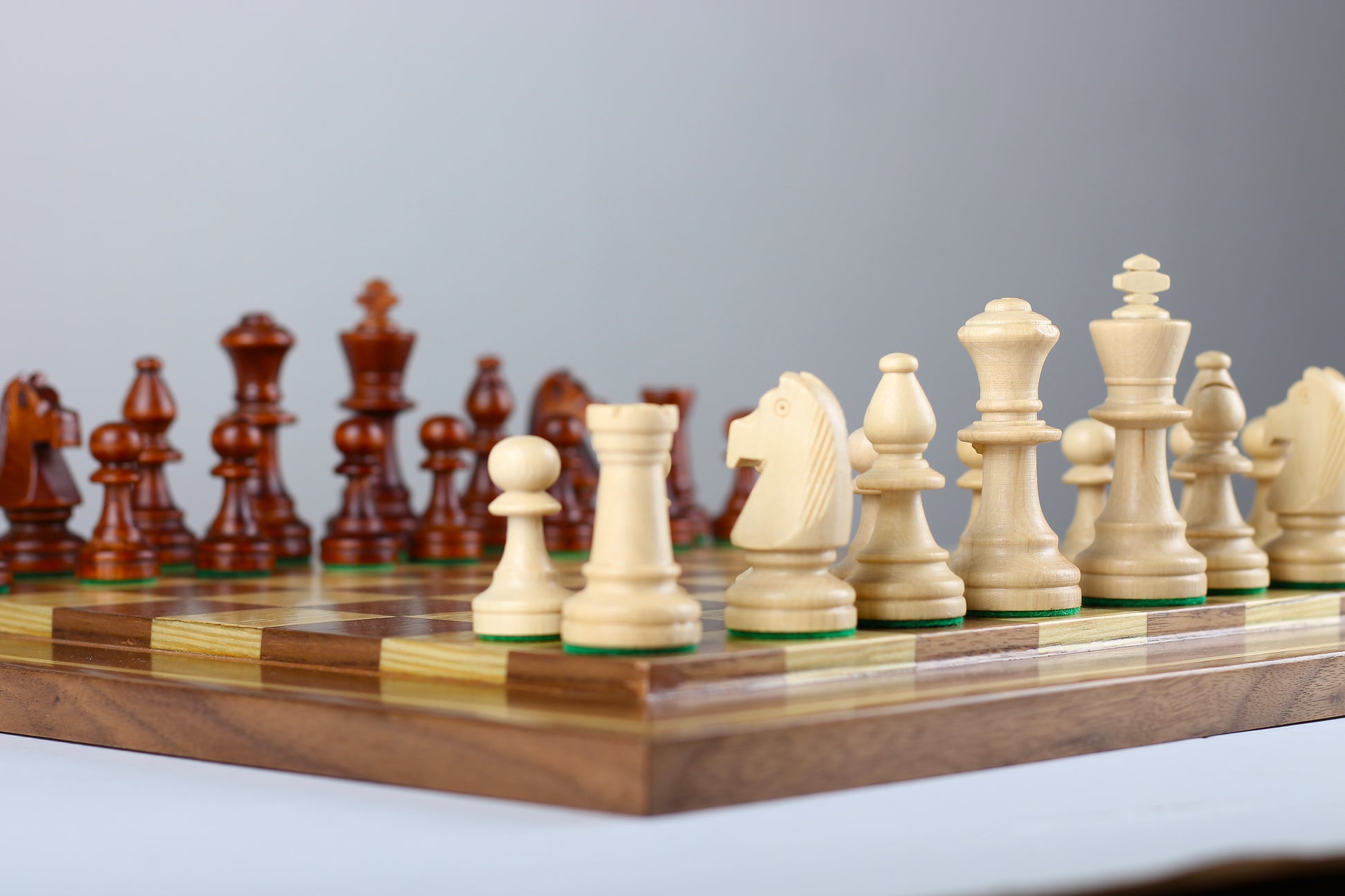Elevate your chess experience with our exquisite chess set, meticulously crafted for timeless elegance. Imported from Poland, the heavy wood pieces exude luxury, with a king towering at an impressive 11cm. The generous 45cm x 45cm board, crafted from walnut wood and oak veneer, adds to the set's opulence.
