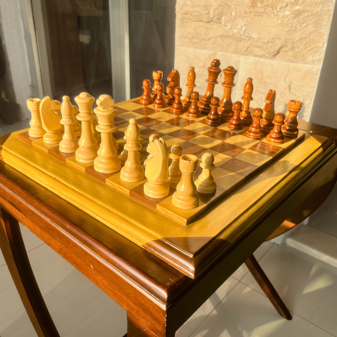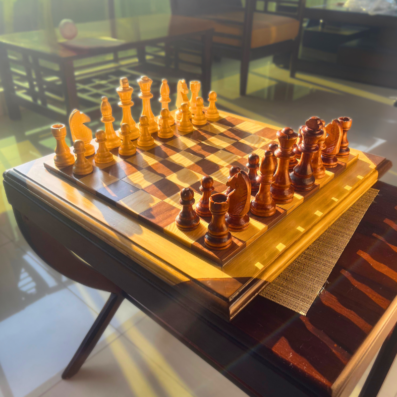 - Board and Pieces: Crafted from the finest Russian Teak, known for its rich grain, durability, and exceptional beauty.