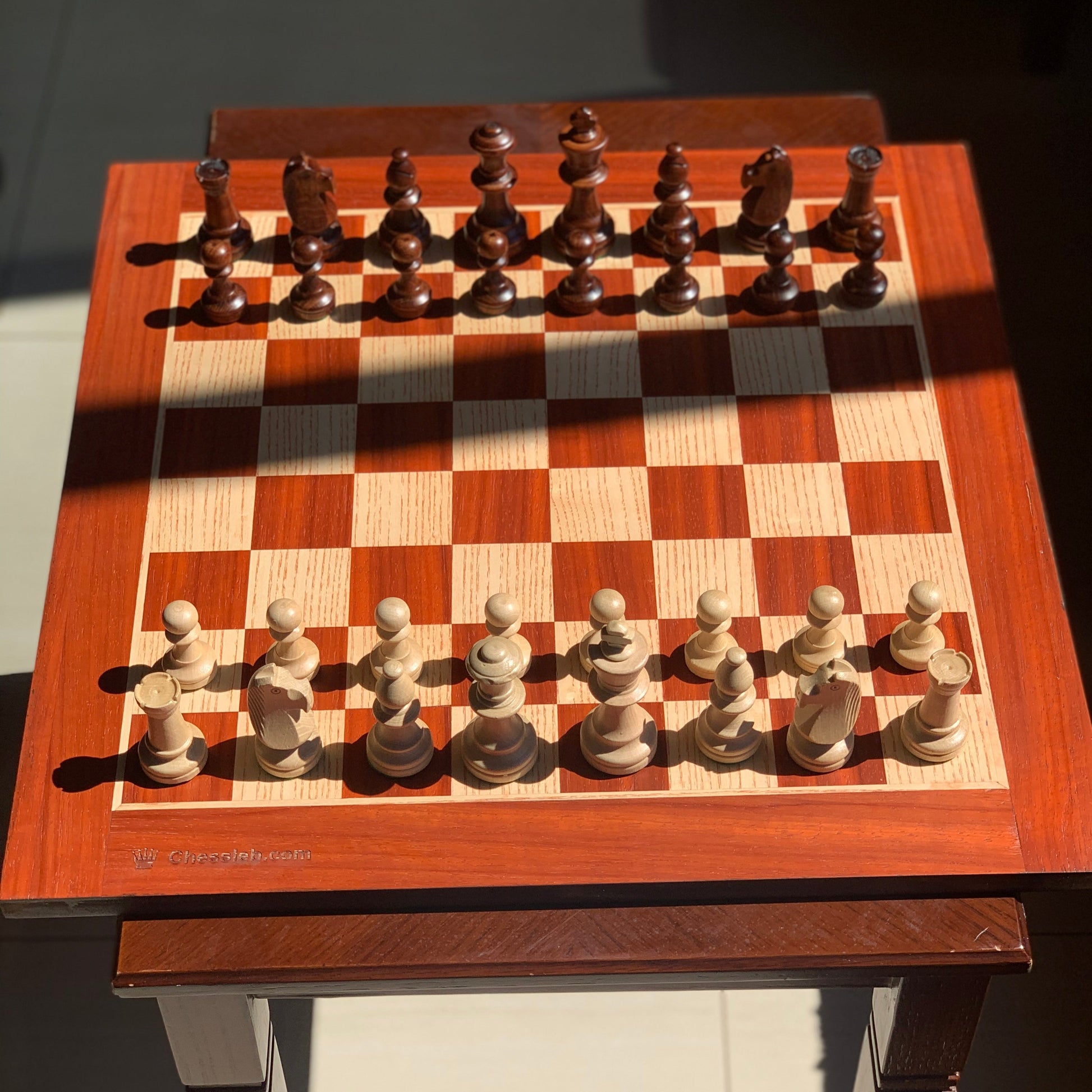 Elevate your chess game with our Rosewood and Limewood Chess Set. The 50cm board, crafted from the finest rosewood and limewood, sets the stage for precision play. The wooden pieces, including a majestic 9.5cm king, showcase exceptional craftsmanship with a triple-weighted design for stability.